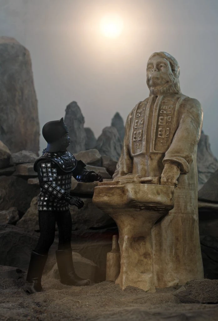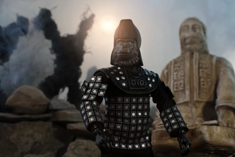 At a meeting of the ape council, General Ursus uses the recent raids by wild humans as a cover to invade the Forbidden Zone where few apes have ventured since the beginning of their society. Ursus thinks a tribe of humans lives there, due to his gorilla scouts failing to return from the zone. Ursus is successful and assembles a gorilla army, which marches into the Forbidden Zone accompanied by Dr Zaius. The group of intelligent mutants that dwell in the Forbidden Zone use their psychic powers to deter the apes, Ursus and his gorillas are frightened but Dr Zaius becomes enraged charging forward. Ursus and his soldiers then follow Zaius finding the entrance to the mutant city and leads the apes into the heart of the mutant world which houses a nuclear weapon. Ursus meets the mutant leader, who is killed and commands for the nuclear weapon to be pulled own. Zaius pleads with Ursus not to touch the missile, fearing it’s true intent. Ursus ignores him but is shot dead by Taylor and Brent as the humans try and prevent damage to the bomb.