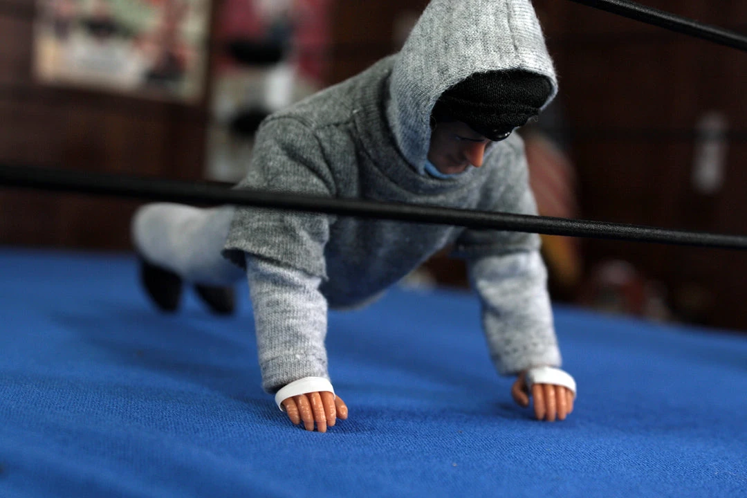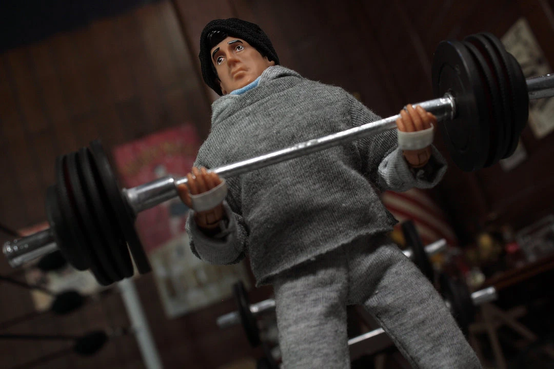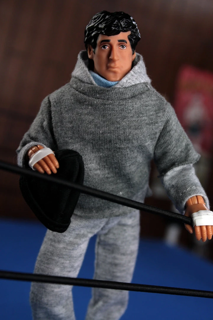 It’s the sports drama that launched a thousand sequels: Rocky, the story of down-on-his-luck Philadelphia southpaw Rocky Balboa’s quest to beat heavyweight boxing champion Apollo Creed in a title bout. To prepare, Rocky engages in an endless series of grueling physical challenges: he runs through the streets; he exercises while holding bricks; he punches meat; he boxes; he does push-ups; most memorably, he sprints up the steps of the Philadelphia Museum of Art. Mego pays homage to that iconic movie scene with their 8″ Rocky Balboa figure in his training sweatsuit exclusively available at ZLC Collectibles.