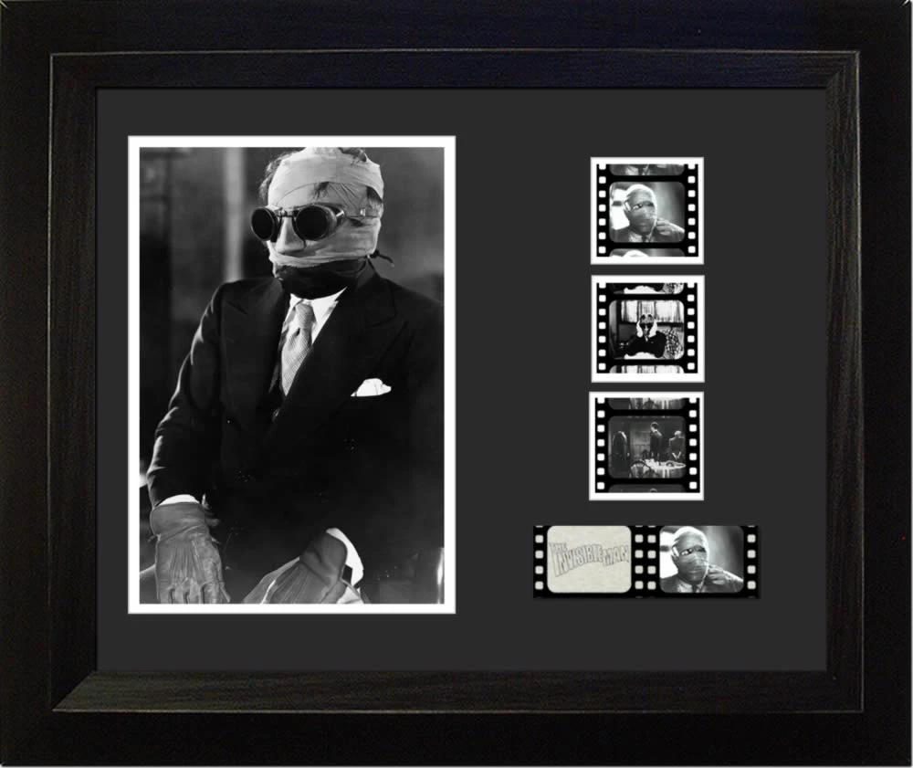 Take a step back into the era of classic horror with this FilmCells presentation. This special edition framed collectible contains five clips of real 35m film from the movie. A scientist turns himself invisible. However the formula slowly drives him insane causing him to terrorize the countryside as an invisible killer.