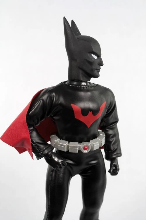 Having taken over the mantle, Batman of the future Terry McGinnis, joins the Mego Heroes line as an 8″ figure! Officially licensed and fully poseable, this Batman Beyond figure features 26 points of articulation for a variety of posing options! Outfitted in a real cloth batsuit with utility belt and gliders based on his appearance in the fan-favorite animated series Batman Beyond, this limited edition action figure comes packaged on a fully illustrated retro-style blister card!