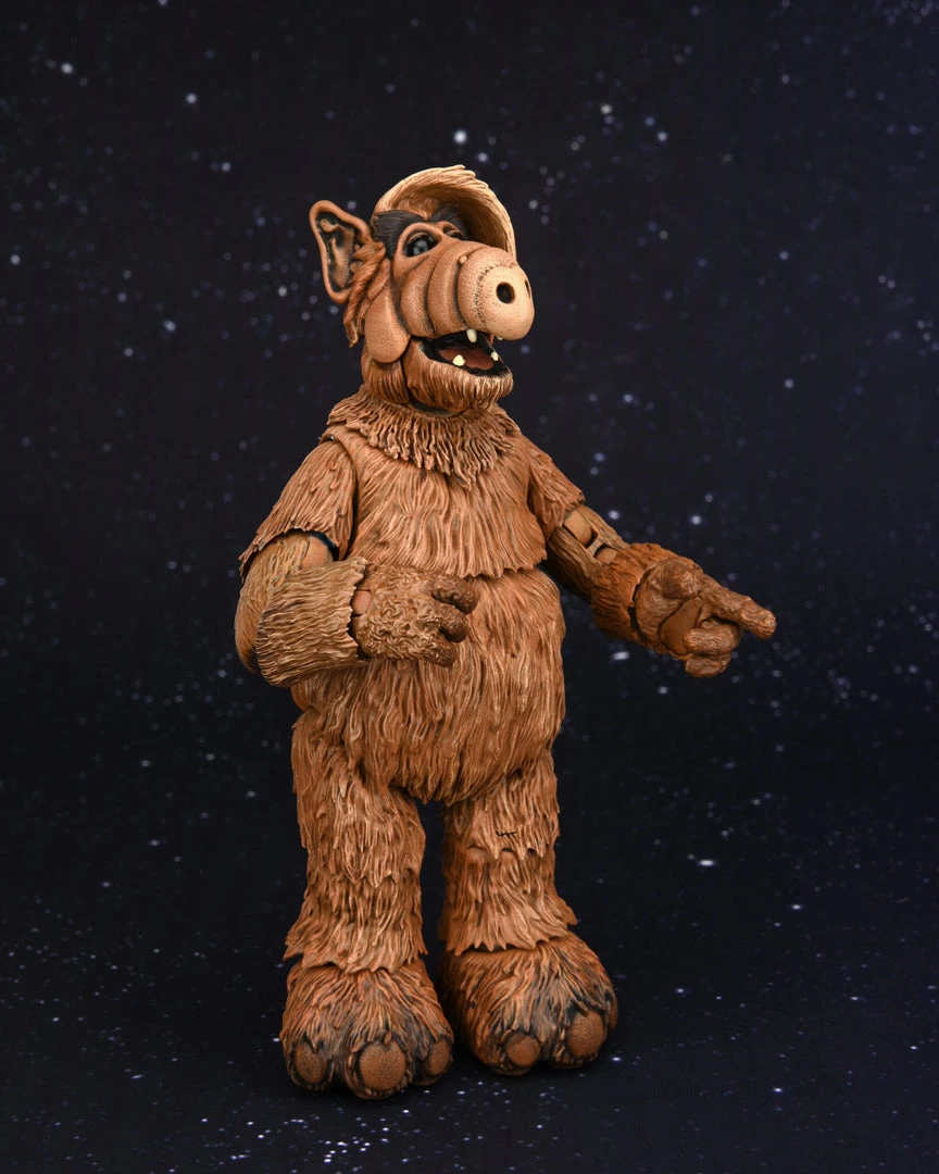 Bring home your own Alien Life Form with this Ultimate action figure of ALF, everyone’s favorite visitor from the planet Melmac! The 80s sitcom about a cranky alien hiding in a local family’s garage after crash-landing on our planet hit all the right notes with a generation, and now ALF steps into the spotlight as NECA’s newest Ultimate action figure. Includes canned beverage, annoyed cat on a bun, photo frame, bowl of popcorn, loud Hawaiian shirt, sunglasses, radio, interchangeable hands and more!