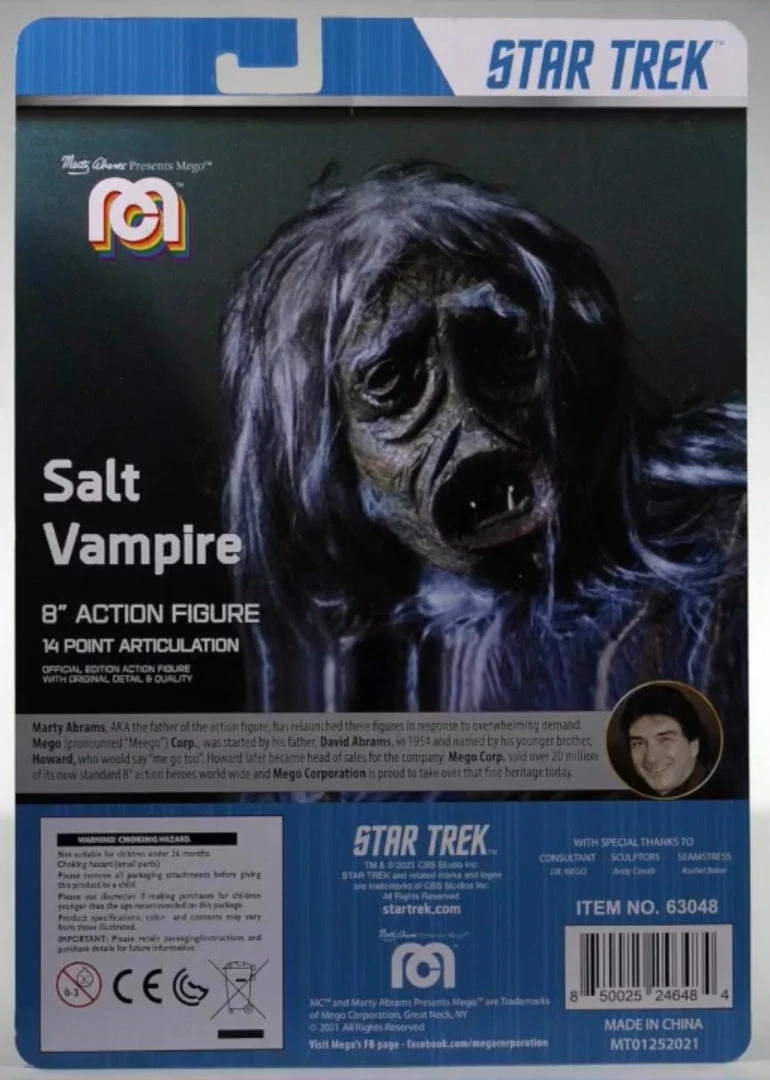 The salt vampire was an intelligent, bipedal creature that once inhabited the planet M-113, which by the mid-23rd century, contained nothing but “the ruins of an ancient and long-dead civilization“. Though widely believed to be extinct, the salt vampire was later given as an example of “deadly” fauna found in space, but they were still occasionally encountered throughout the late 24th century.